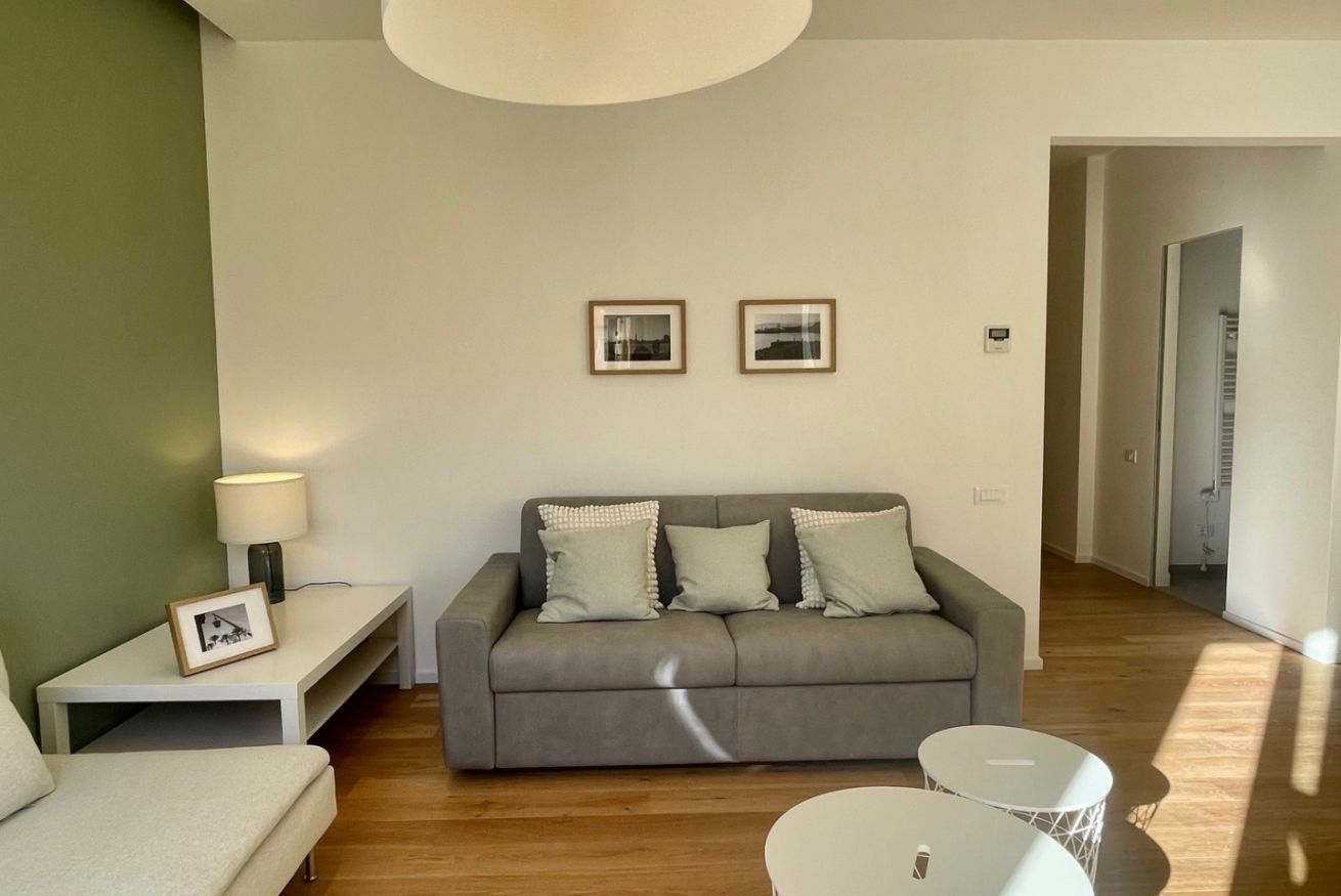 • un grandissimo living con balcone, angolo relax e divano letto matrimoniale
